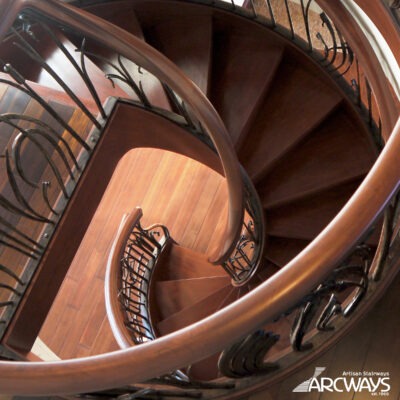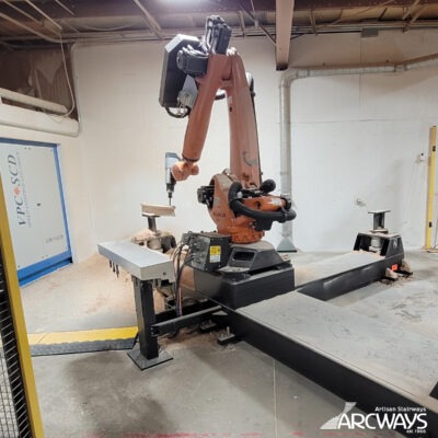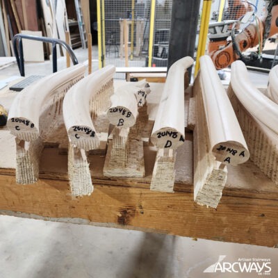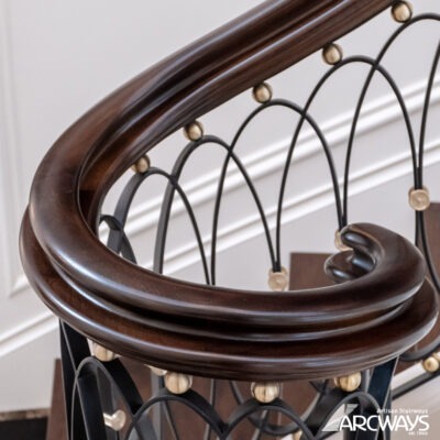 As everyone in the trade already knows, Arcways has been building stairs for a very long time – nearly 60 years. One thing that’s always distinguished an Arcways stair from others is the way we’ve crafted our custom handrails. We embraced robotic capability about 20 years ago to allow us to carve complex, fluid handrails. These rails provide a spectacular finishing touch: